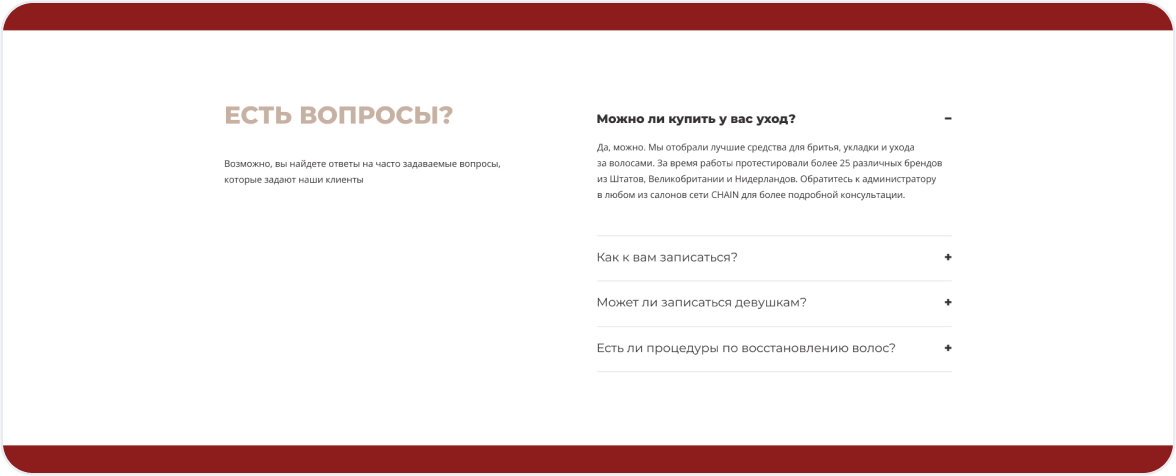 Раздел с отзывами формирует доверие к вашему бренду и помогает новым клиентам принять решение.