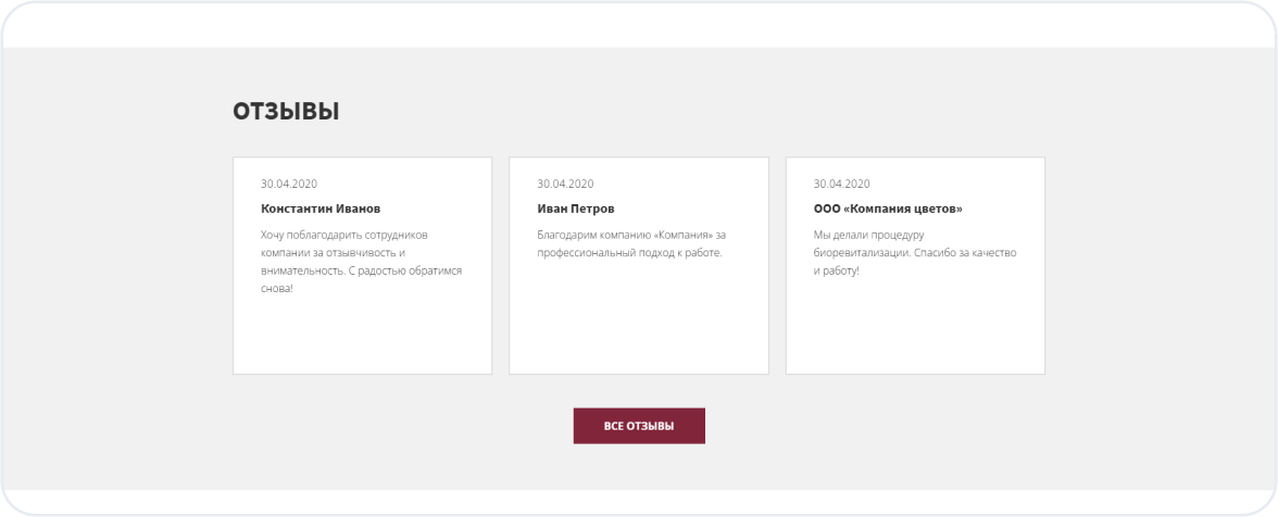 Раздел отзывов, усиливающий доверие и повышающий конверсию.