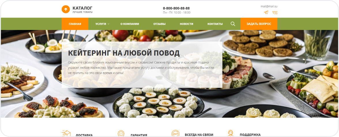SEO-оптимизация — сайт готов к продвижению по ключам: сайт кейтеринга, создание сайта кейтеринг, лендинг кейтеринг услуги.