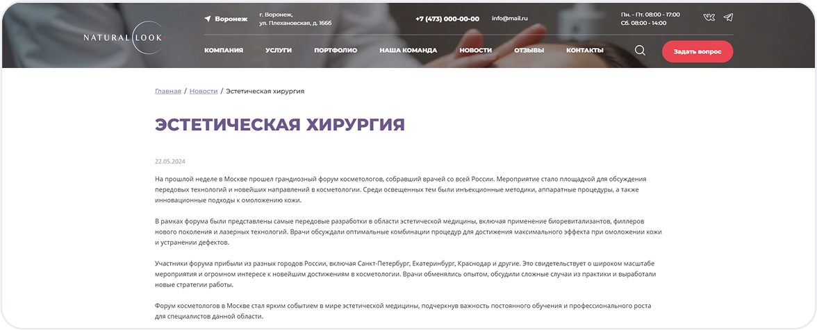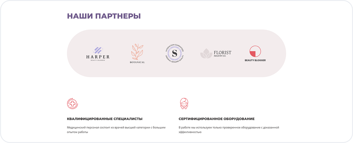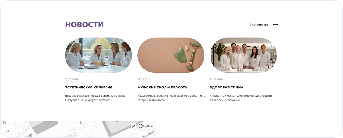 Благодаря этому сайт можно сразу запускать в рекламных кампаниях или продвигать органически — структура уже адаптирована под основные поисковые запросы: сайт косметологии на битрикс24, сайт салона красоты, готовый сайт клиники эстетической медицины и т.д.