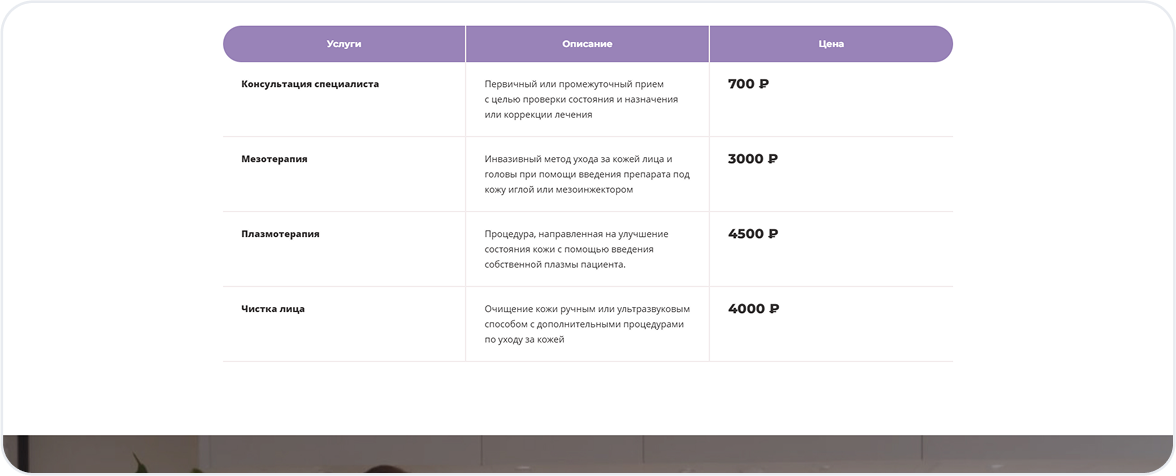 акценты на кнопках CTA («Записаться», «Узнать цену», «Получить консультацию»).