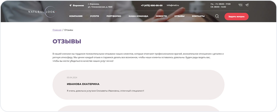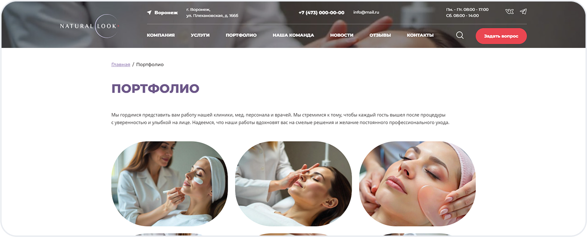 Портфолио и результаты — фото до/после и реальные отзывы пациентов;