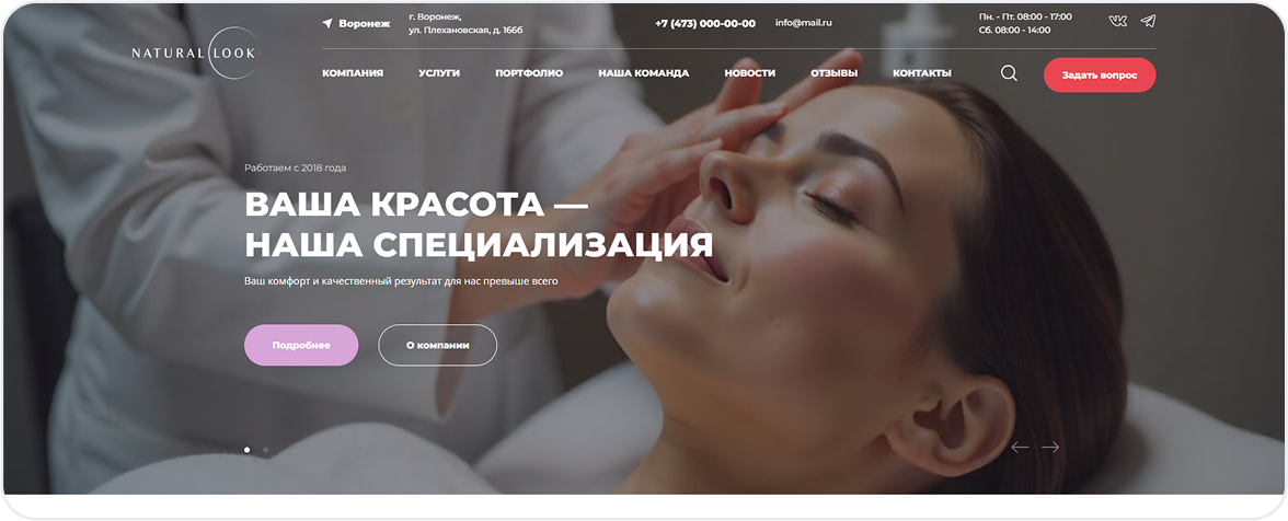 Готовый сайт косметологии позволяет начать приём заявок в тот же день после установки.