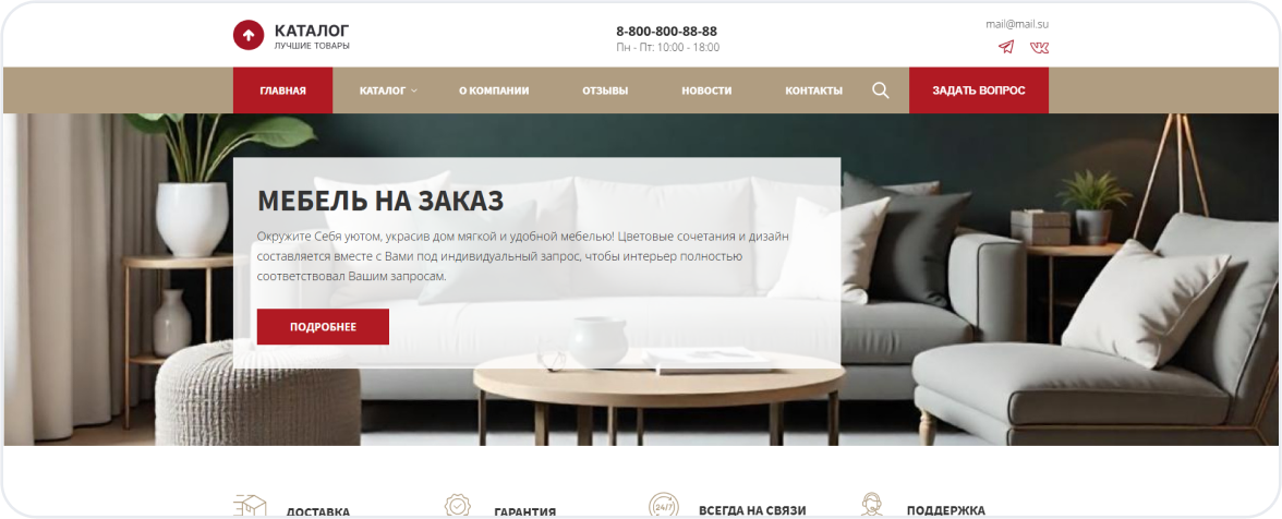 Страницы «О компании», «Контакты», «Гарантии» и другие важные разделы.