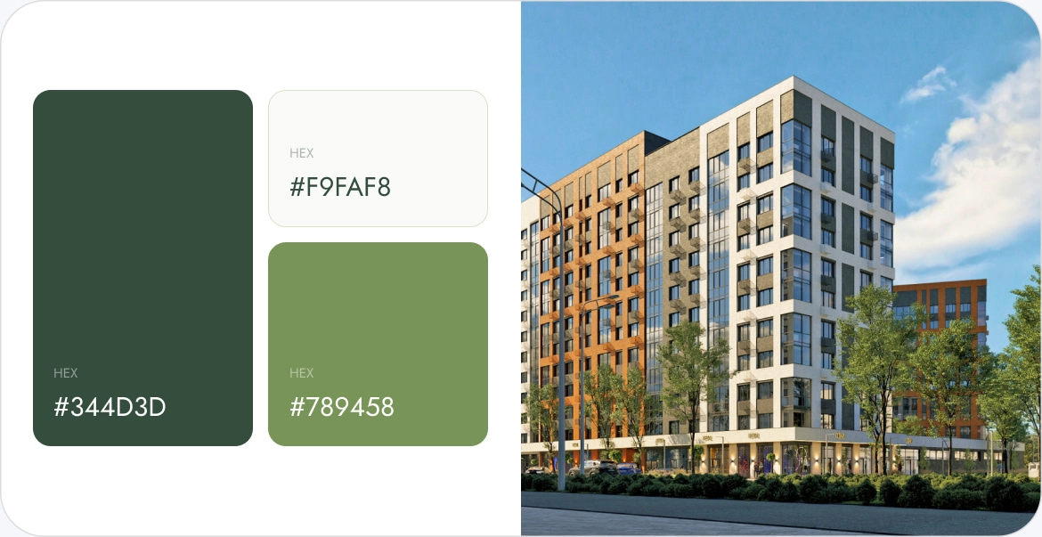 Работа дизайнера началась с детального брифинга, на котором мы определили ключевые идеи и ожидания клиента. Основная концепция логотипа была построена на архитектурном ритме, отражающем гармонию и структуру жилого комплекса. Мы создали ряд эскизов, в которых отрисовывались символы, подчеркивающие динамику и современность проекта.