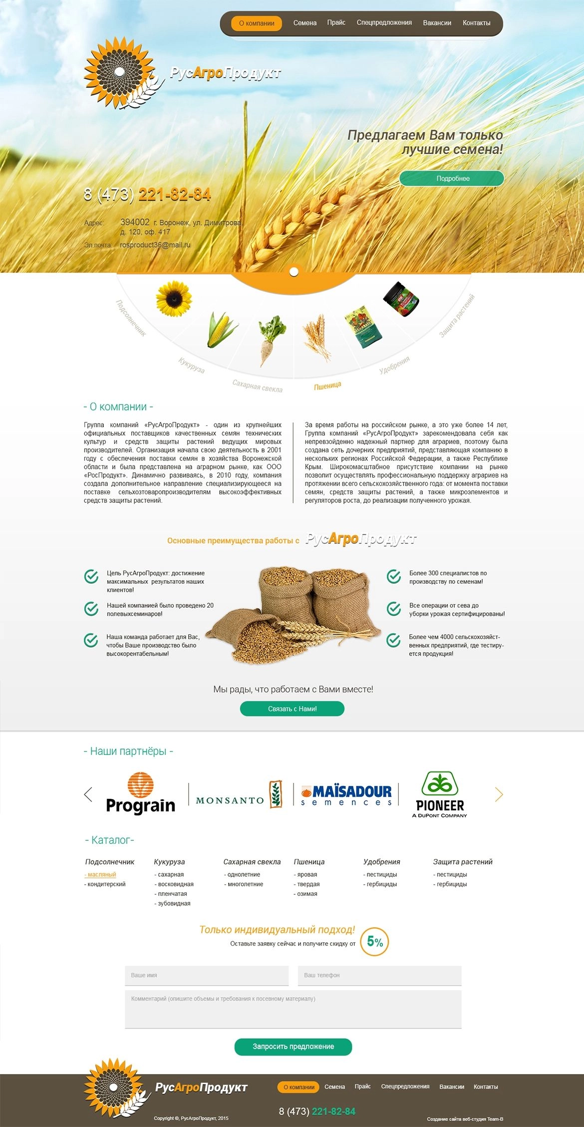 Реализован сайт с каталогом для группы компаний «РусАгроПродукт», которые являются крупнейшими официальными поставщиками качественных семян технических культур и средств защиты растений ведущих мировых производителей!