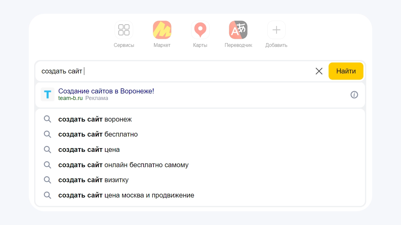 Наша команда веб-студии Team-B готова создать эффективные текстовые объявления в Яндексе, чтобы вы смогли раскрыть свой бизнес на максимум!